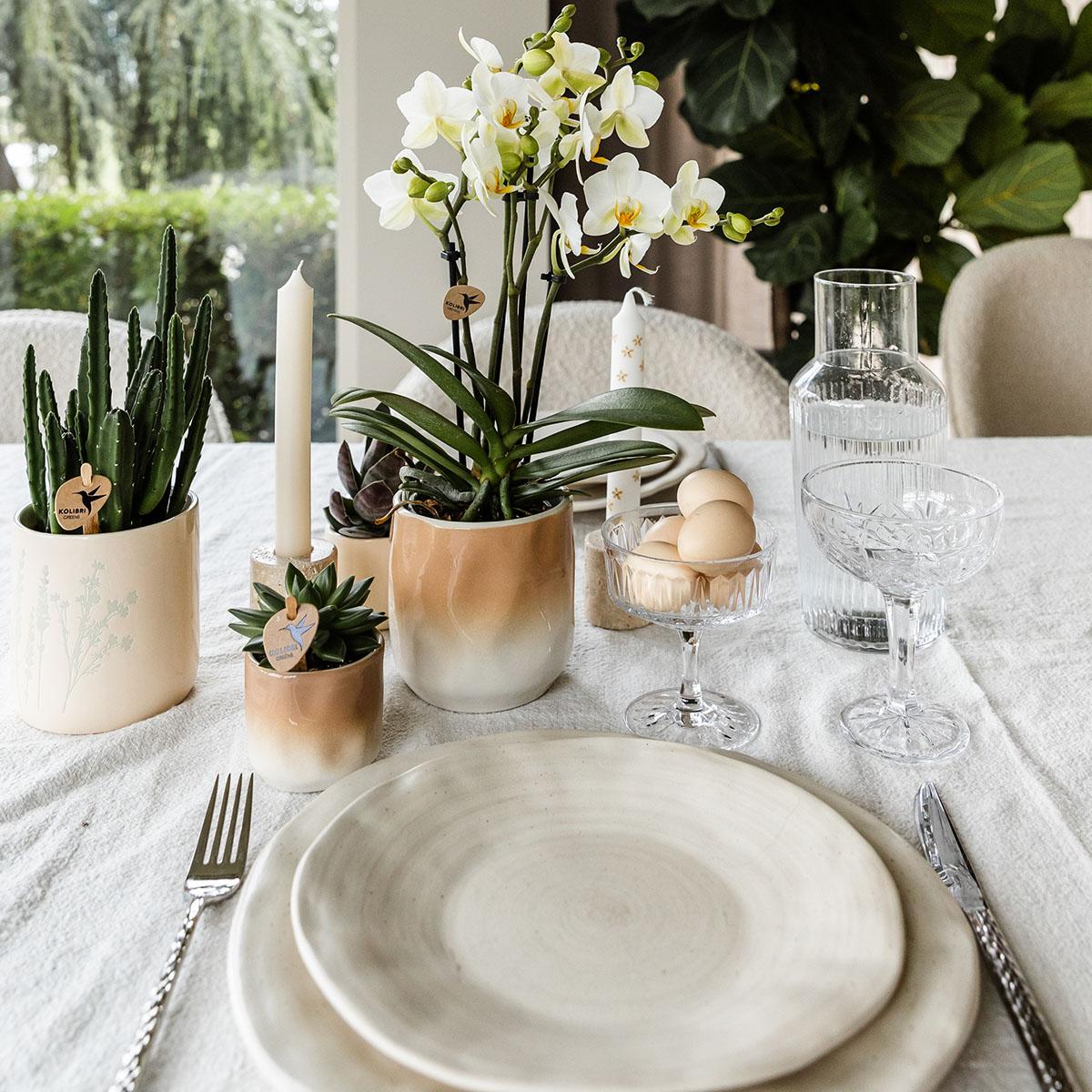 Plant Set Optimism Small - Green Plants + White Orchid in Optimism Pots + White Tray