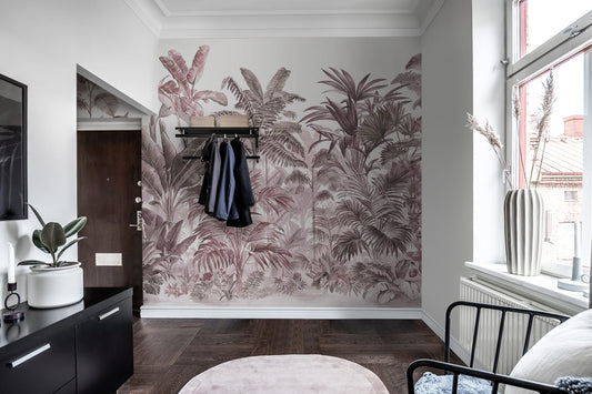 Plantenset in rieten mand - Drie paarse orchideeën Morelia 9cm + drie groene planten Rhipsalis - Jungle Bouquet paars incl. zelfvoorzienend waterreservoir